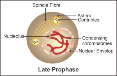 During prophase, the chromosomes become visible and the nucleolus disappears. The mitotic spindle forms and the nuclear envelope disappears.