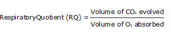 The respiratory quotient is the ratio of the volume of CO2 evolved to the volume of O2 consumed in respiration.