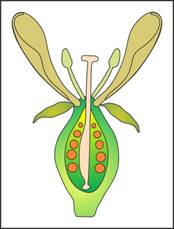 with an ovary which is superior and bilocular, and the placenta is swollen