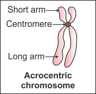 Acrocentric chromosome: The centromere is present close to one of the ends of the chromosome.